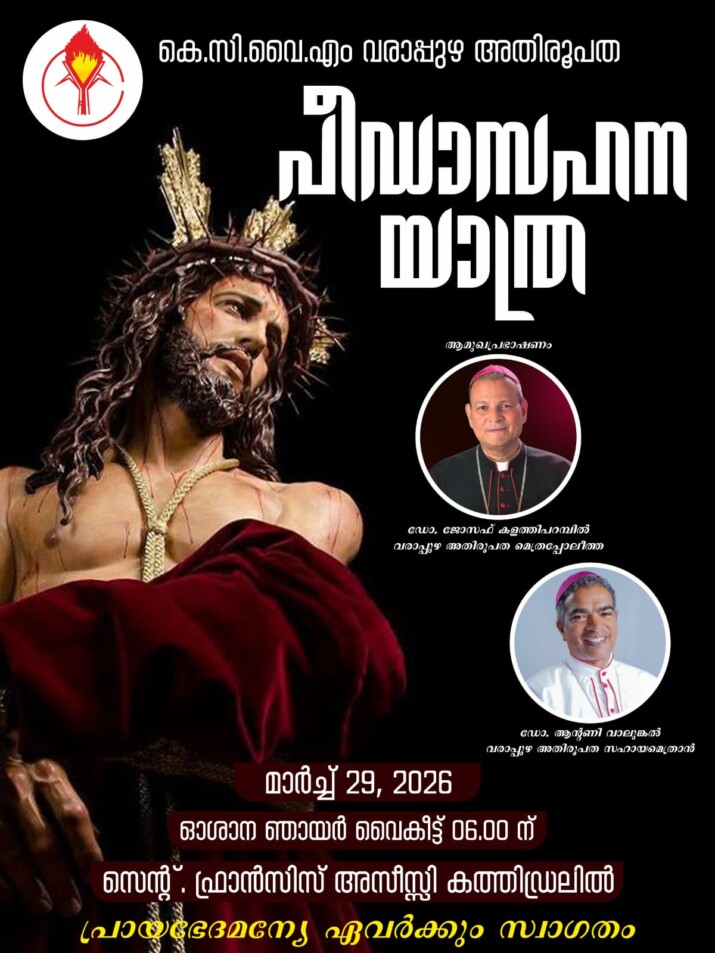 കെ.സി.വൈ.എം വരാപ്പുഴ അതിരൂപതയുടെ നേതൃത്വത്തിൽ, വിശുദ്ധവാര ഒരുക്കമായി യേശുവിൻ്റെ പീഡാനുഭവ ചരിത്രം സ്മരിച്ച്…